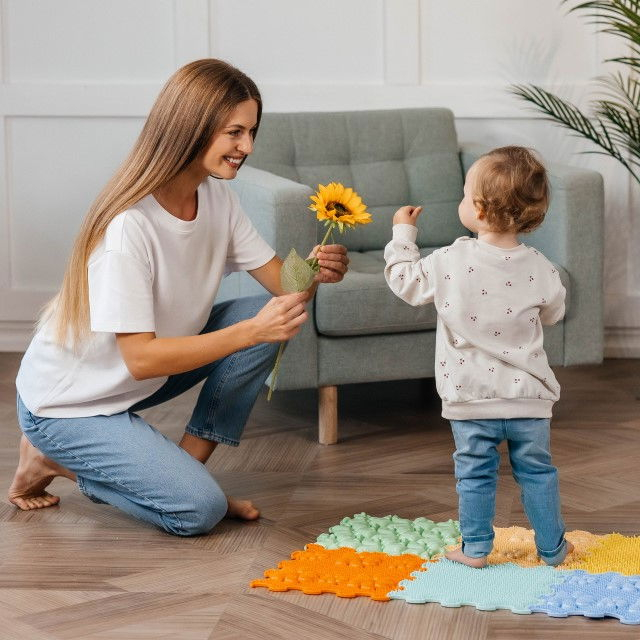 - Setul "Primii Pasi" include 8 piese de puzzle cu forme si texturi diferite.