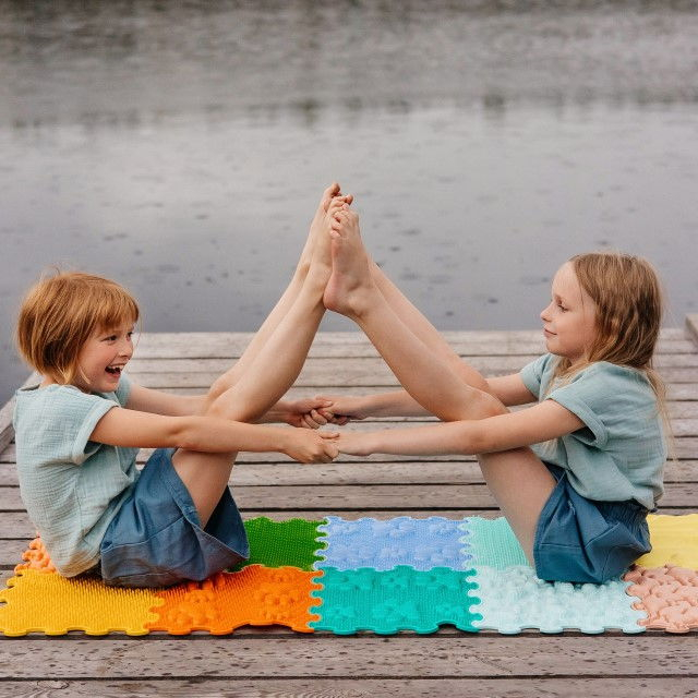 Covorasul, disponibil in magazinul online Empria, include 8 elemente cu diferite forme si texturi: