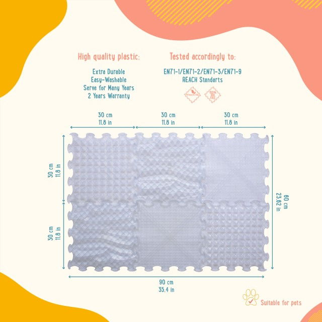 Covorasul, disponibil in magazinul online Empria, include 6 elemente transparente: