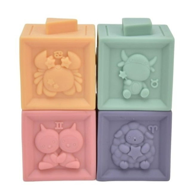 Cuburile sunt fabricate din silicon moale, oferind o textura placuta si sigura. Sunt suficient de moi pentru a fi stranse fara efort, protejand manutele delicate ale bebelusului.